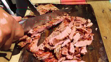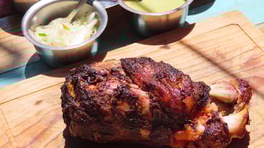 Una pieza ahumada que, gracias a su tiempo de cocción, ofrece una textura suave en la carne que encantará tu paladar, servida con salsas y tortillas.